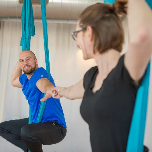 For aerial yoga students who have already had an intro session or taken Aerial Yoga Essentials. Enjoy a full hour of private aerial instruction with one of our instructors. Book a private session if you prefer to practice in a one-on-one setting, or if you would like to work on developing or advancing specific aspects of your aerial yoga skills.